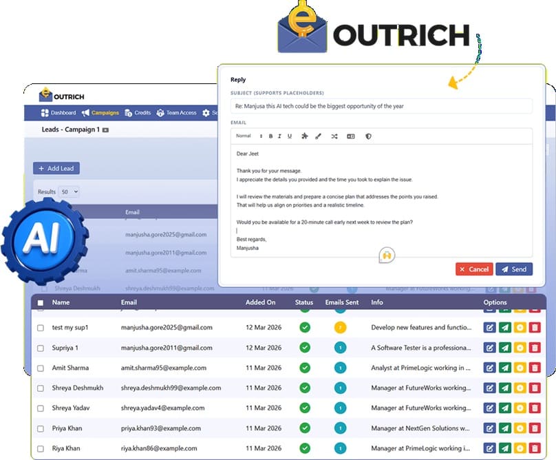 Instead of manually writing and sending emails one by one, you can create a campaign and let the AI handle most of the heavy lifting. Once your campaign is set up, Outrich can: